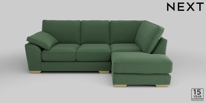 6.6.2 Buy Stamford Grand Relaxed Sit Medium Corner Chaise - Right Hand Relaxed Linen Look Dark Green Large Square Angle - Brushed Brass from the Next UK online shop Click here to use our accessible website