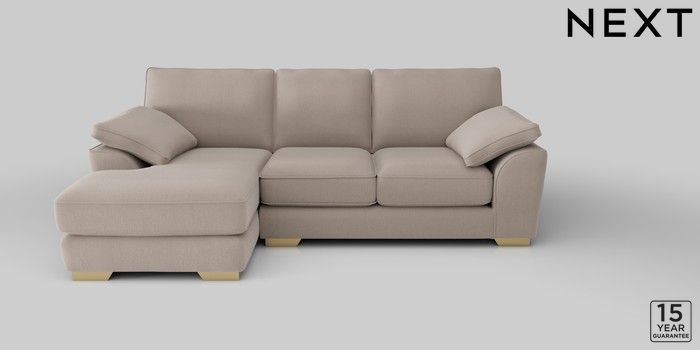 6.6.2 Buy Stamford Grand Relaxed Sit Medium Sofa Chaise - Left Hand Relaxed Linen Look Mid Natural Large Square Angle - Brushed Brass from the Next UK online shop Click here to use our accessible website