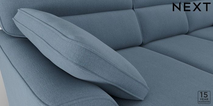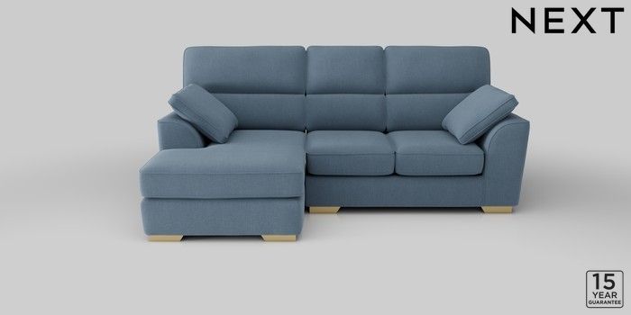 6.6.2 Buy Stamford Highback Large Sofa Chaise - Left Hand Relaxed Linen Look Mid Blue Large Square Angle - Brushed Brass from the Laura Ashley online shop Click here to use our accessible website