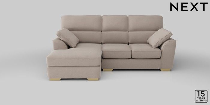 6.6.2 Buy Stamford Highback Large Sofa Chaise - Left Hand Relaxed Linen Look Mid Natural Large Square Angle - Brushed Brass from the Laura Ashley online shop Click here to use our accessible website